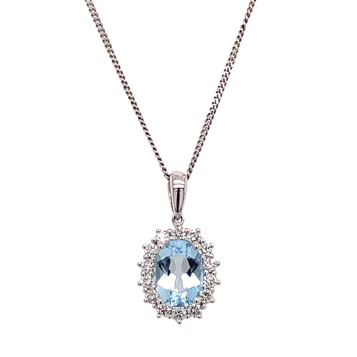 | Aquamarine & Diamond 18ct White Gold Pendant | Aquamarine & Diamond Cluster Pendant | Aquamarine & Diamond Cushion Shaped Pendant | Briolette Aquamarine & Diamond Pendant |