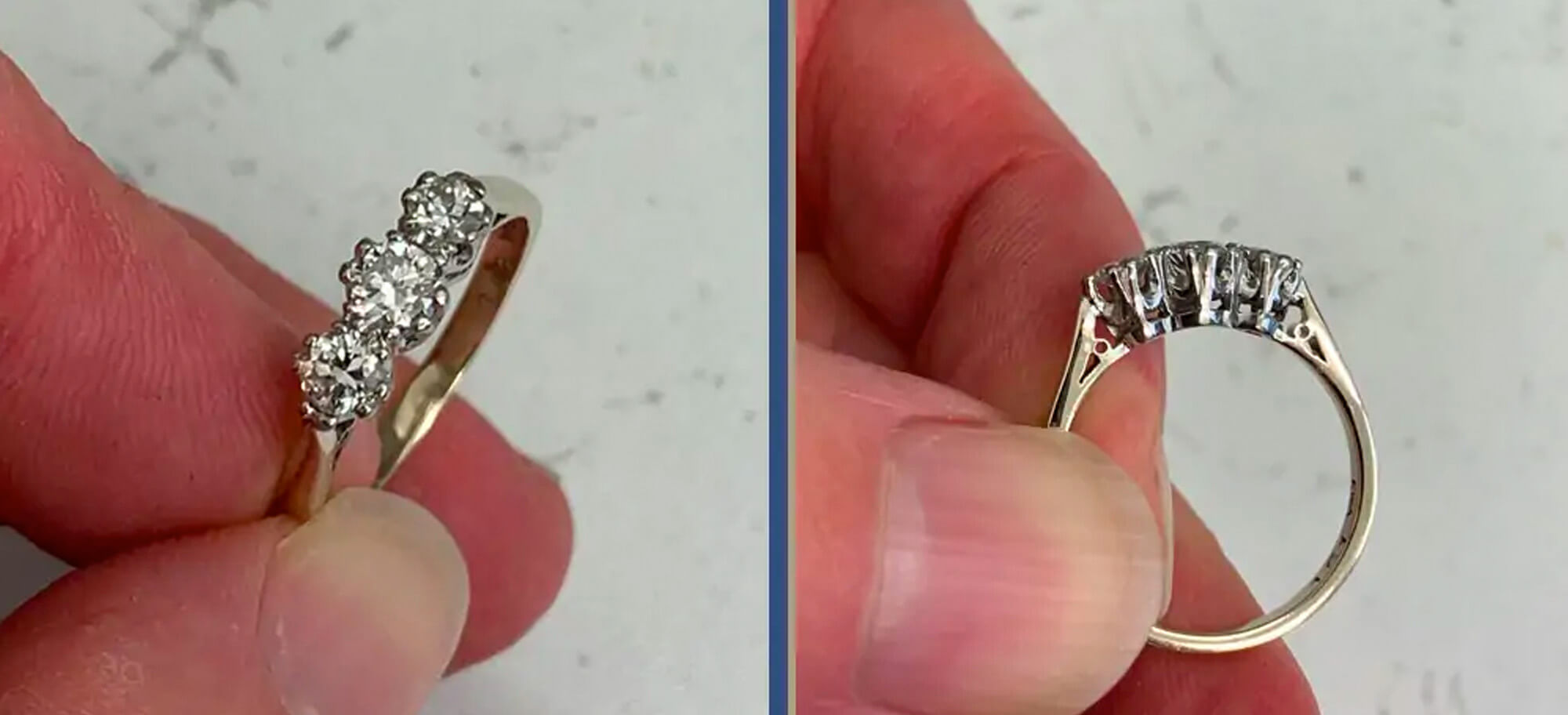Once clean, place in a sieve, put the plug in the sink and run under warm water. Cleaning gemstone rings can often identify other underlying problems – so we use the sieve and keep the plug in to stop anything being washed away. We can reset gemstones fairly easily, but it’s much harder to find matching gemstones – so better to be safe.