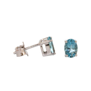 A pair of 6mmx4mm oval aquamarine stud earrings claw set in 18ct white gold.