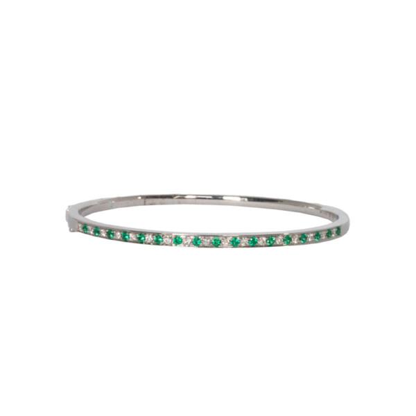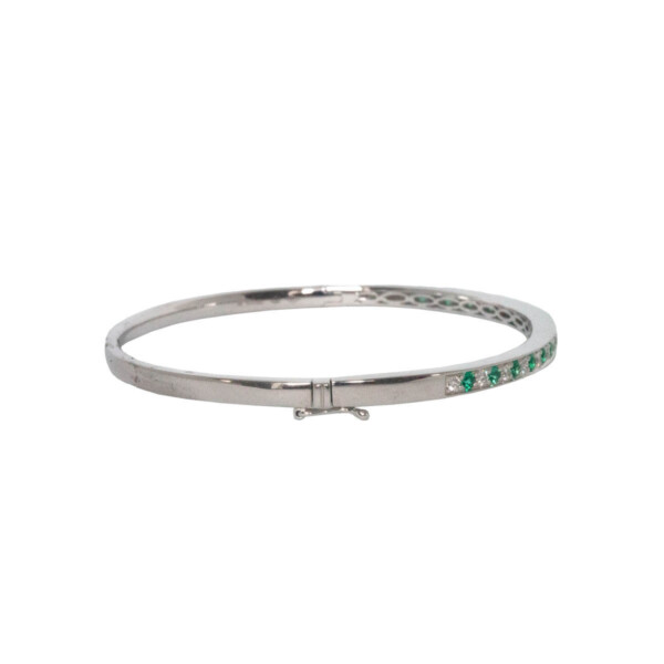 0.38ct Round Emerald & Round Brilliant Cut Diamond Hinged Bangle