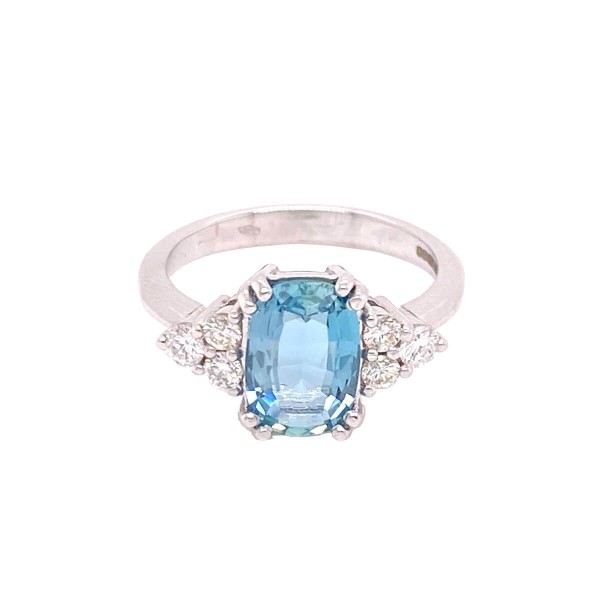 1.58ct Cushion Cut Aquamarine & Round Brilliant Cut Diamond Trilogy Ring