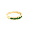 An emerald channel set half eternity ring in 18ct yellow gold.
