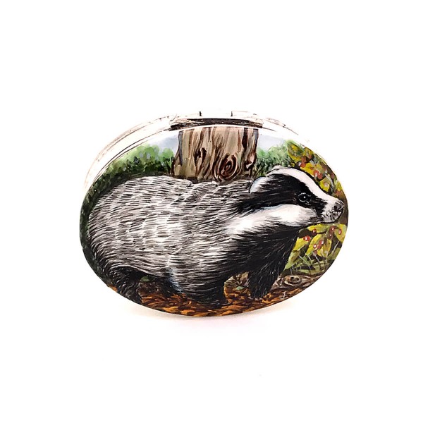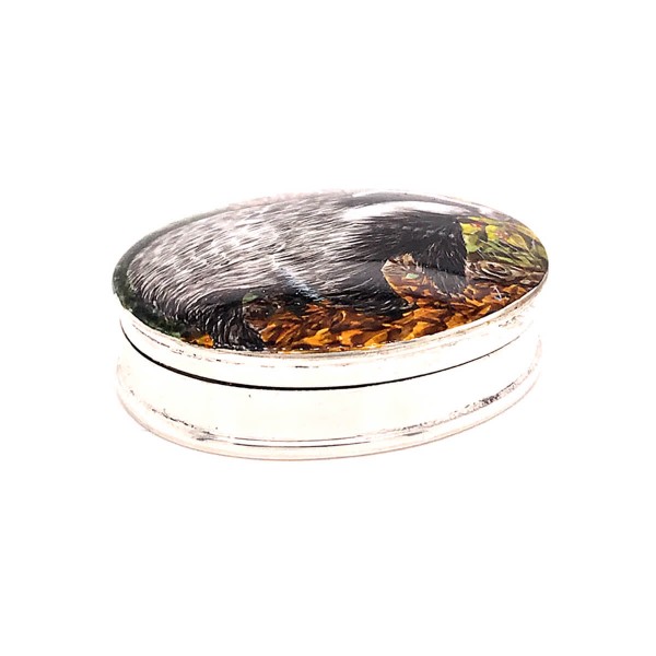 Sterling Silver hand painted badger trinket box.