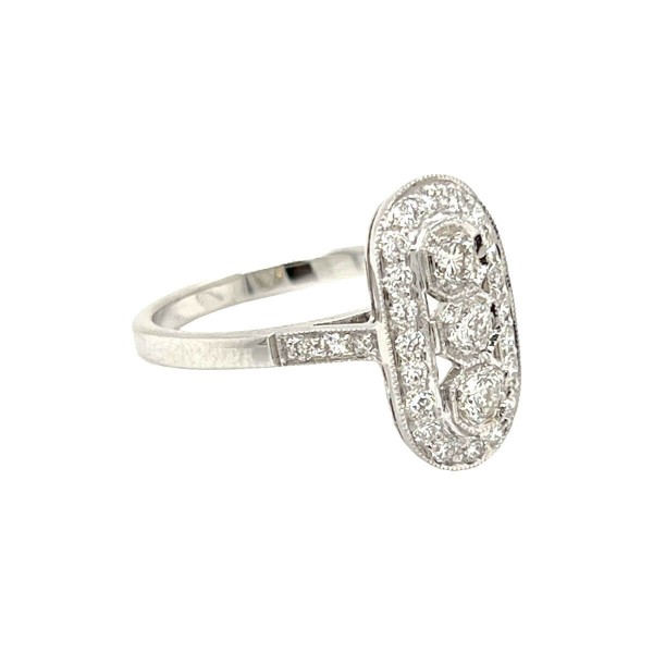 An art deco style diamond cluster ring with 0.64ct of diamonds in an 18ct white gold setting.