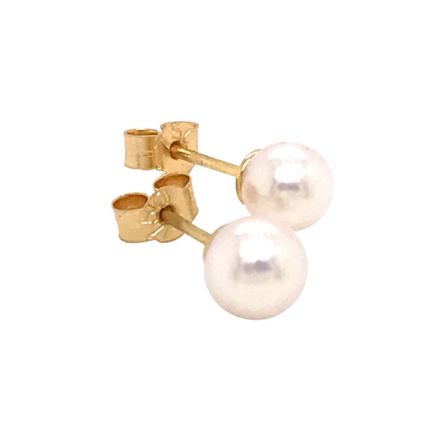 Cultured pearl stud earrings 8.5mm x 9mm with an 18ct yellow gold back.