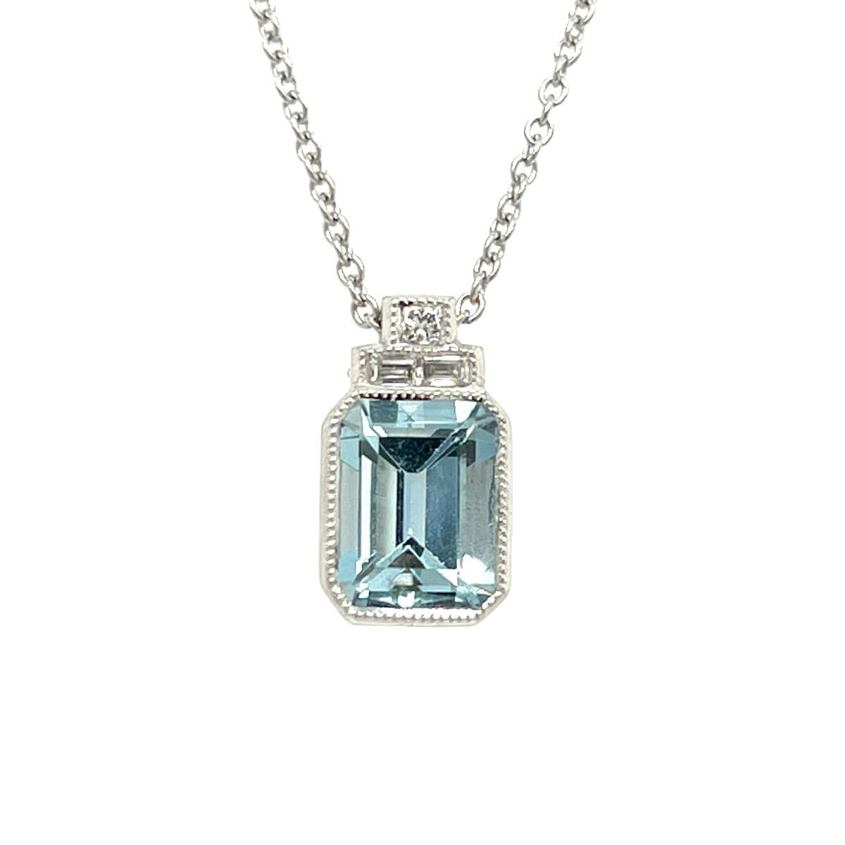 1.15ct Emerald Cut Aquamarine & Diamond Pendant