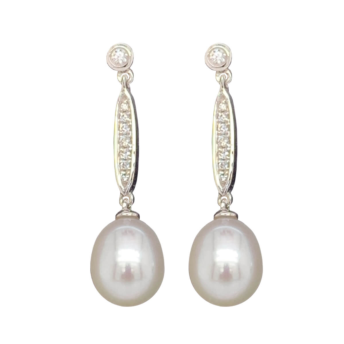 18ct White Gold Freshwater Pearl & Diamond Drop Earrings