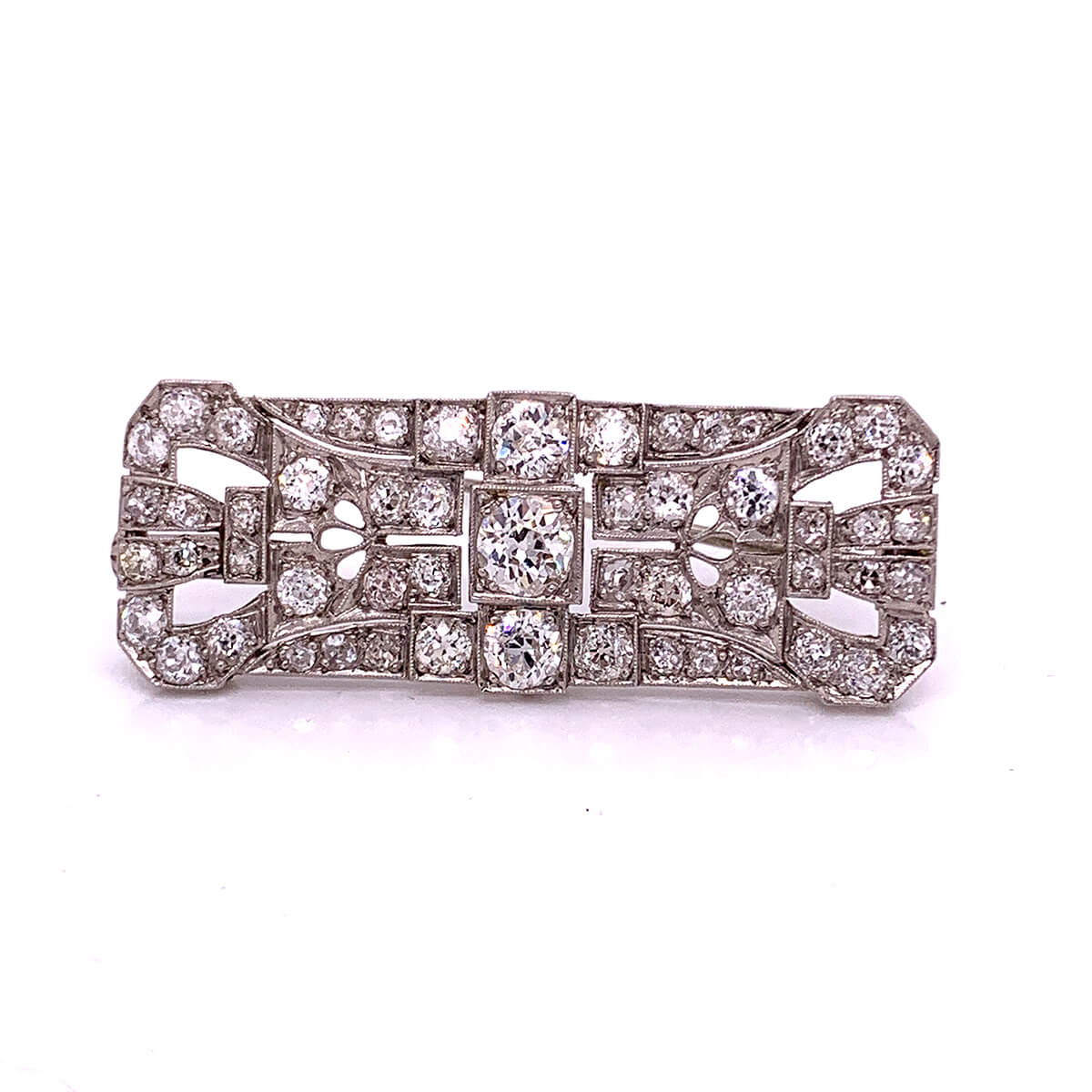 A diamond set symmetrical brooch made with old cut diamonds estimated in 18ct white gold.