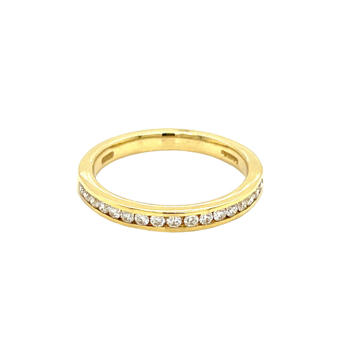 A 0.38ct round brilliant cut diamond half eternity ring demi set in 18ct yellow gold.