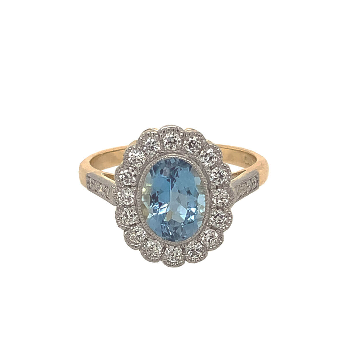 1.14ct Oval Aquamarine & Diamond Cluster Ring